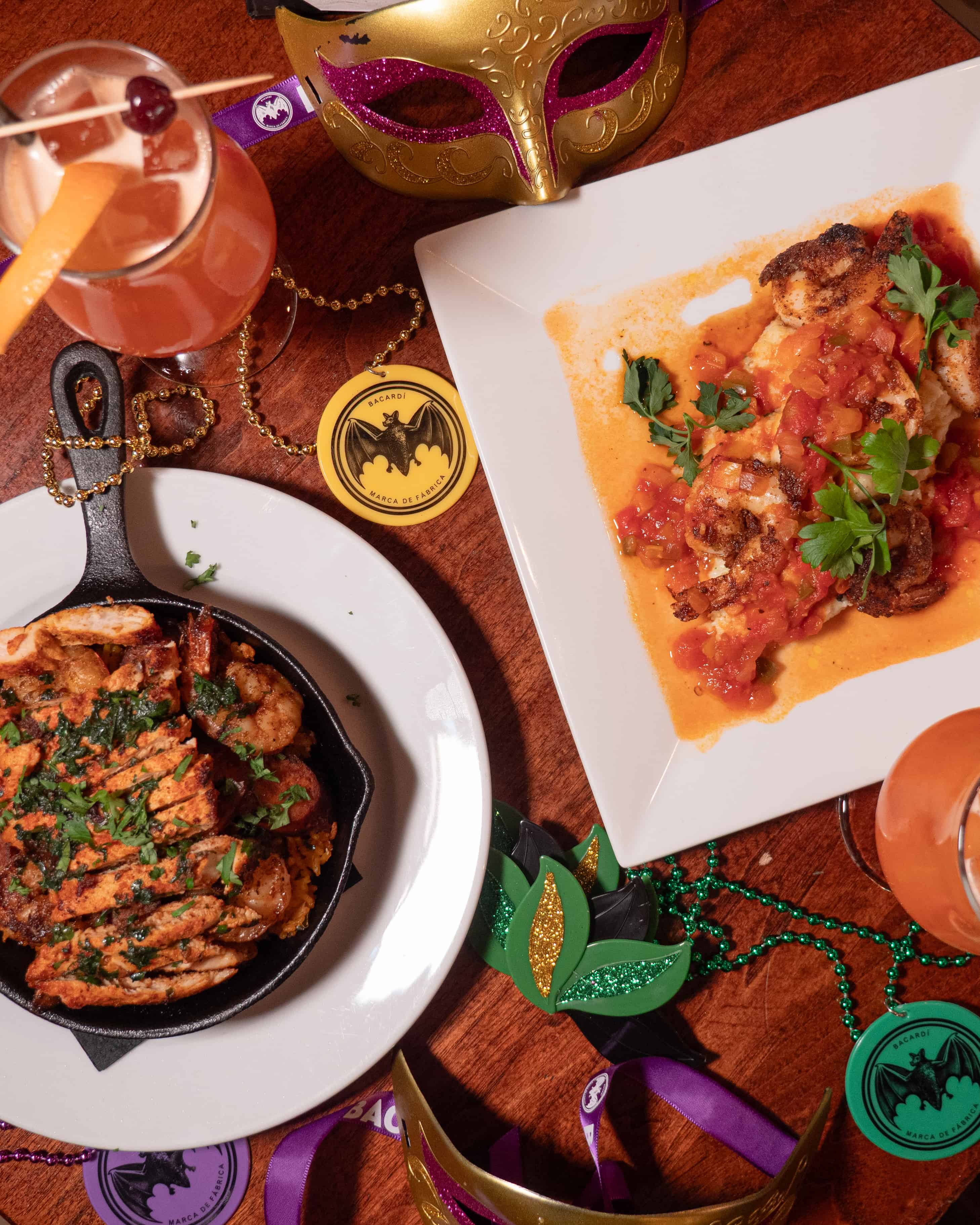 Mardi Gras comes to East Midtown February 17–22 with Bacardi Hurricanes, Cajun Shrimp & Grits, Jambalaya, and more — plus a live acoustic performance with beads and masks on February 21.